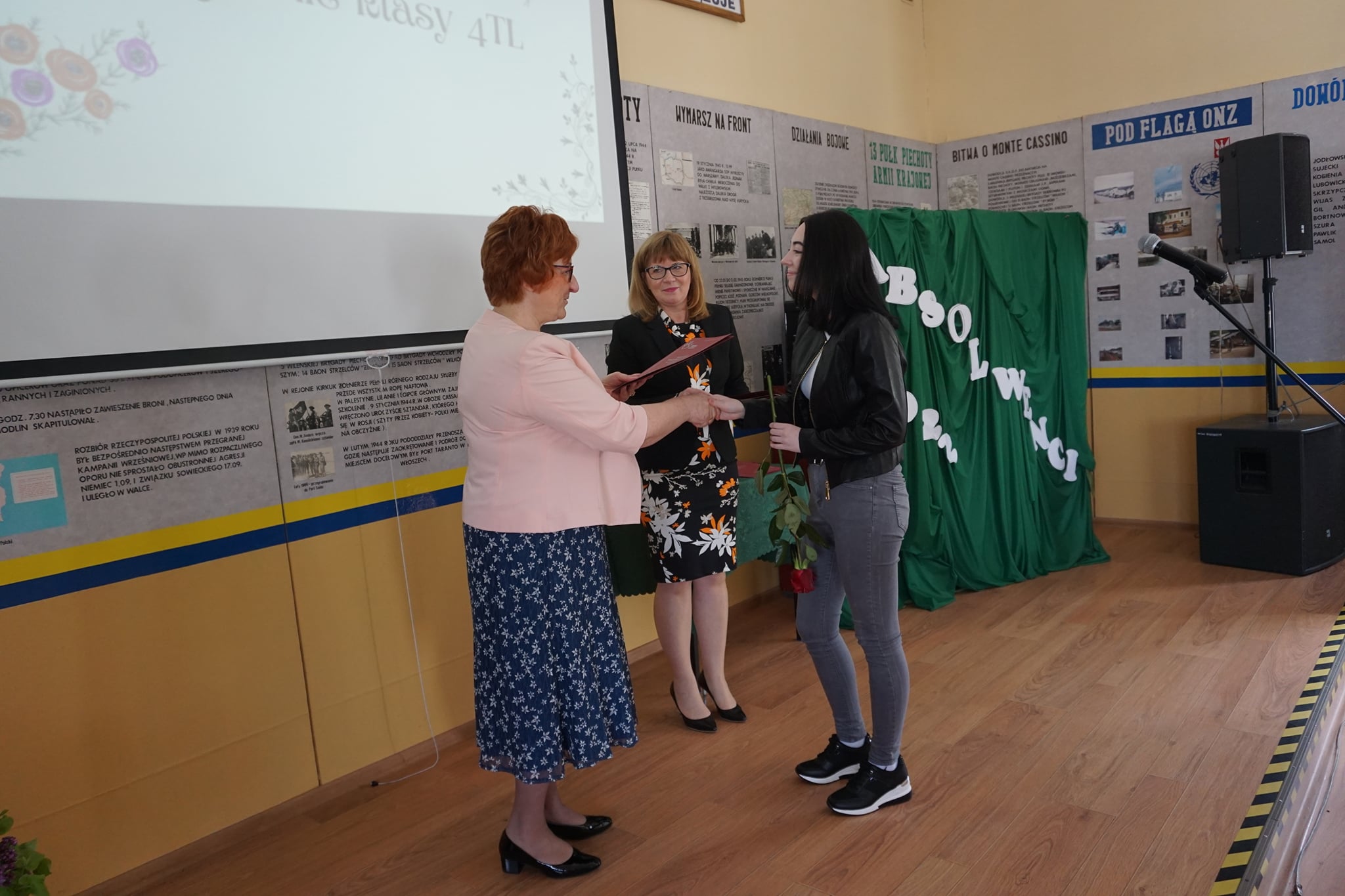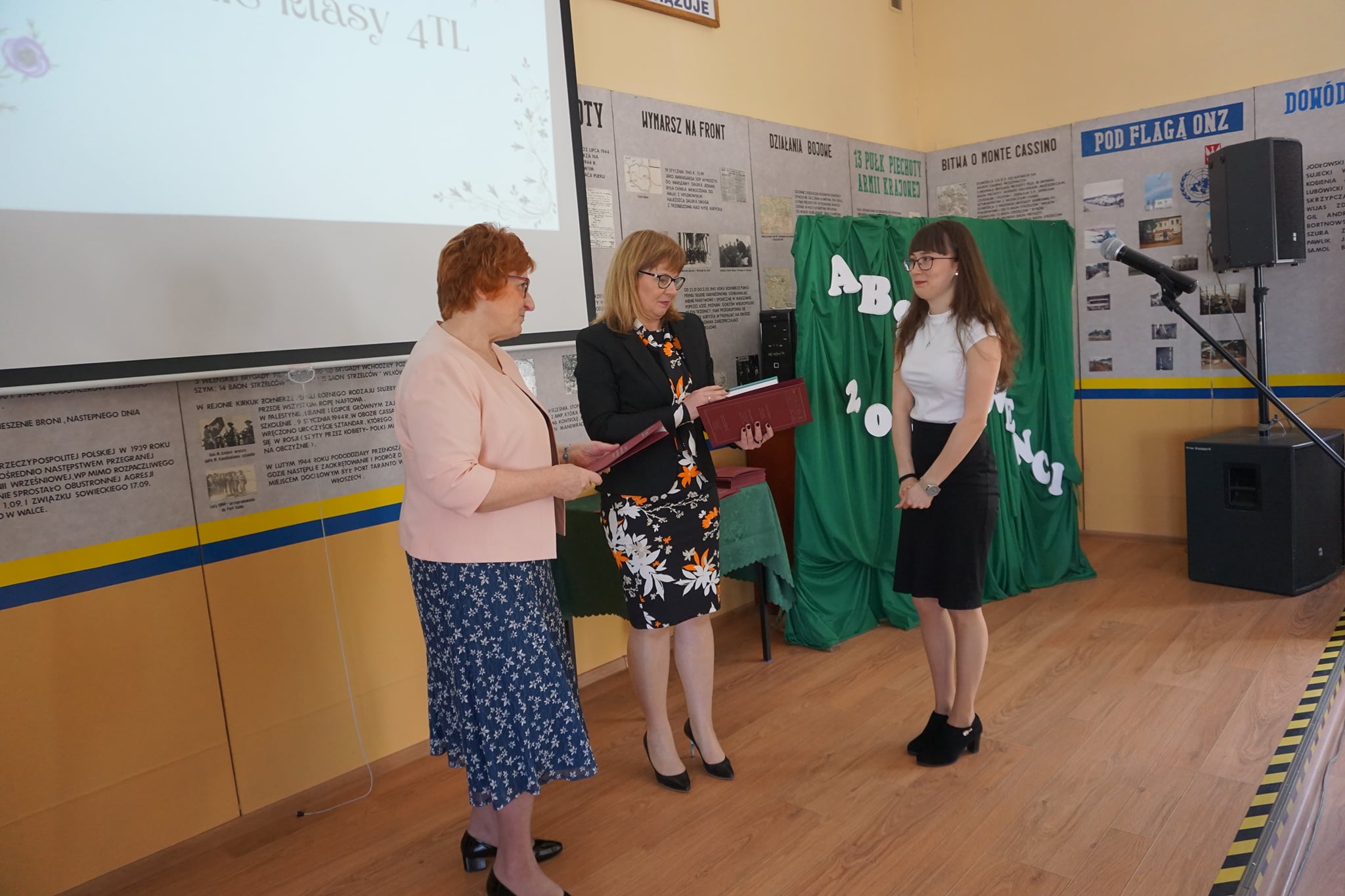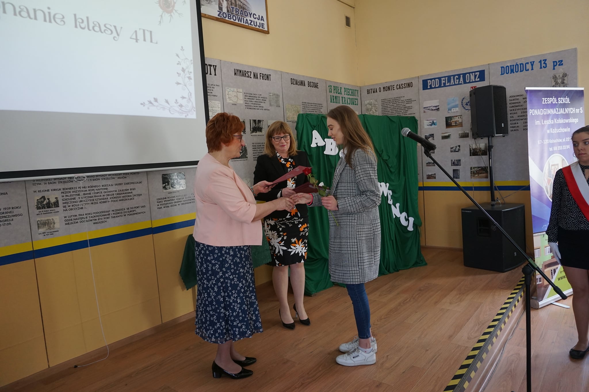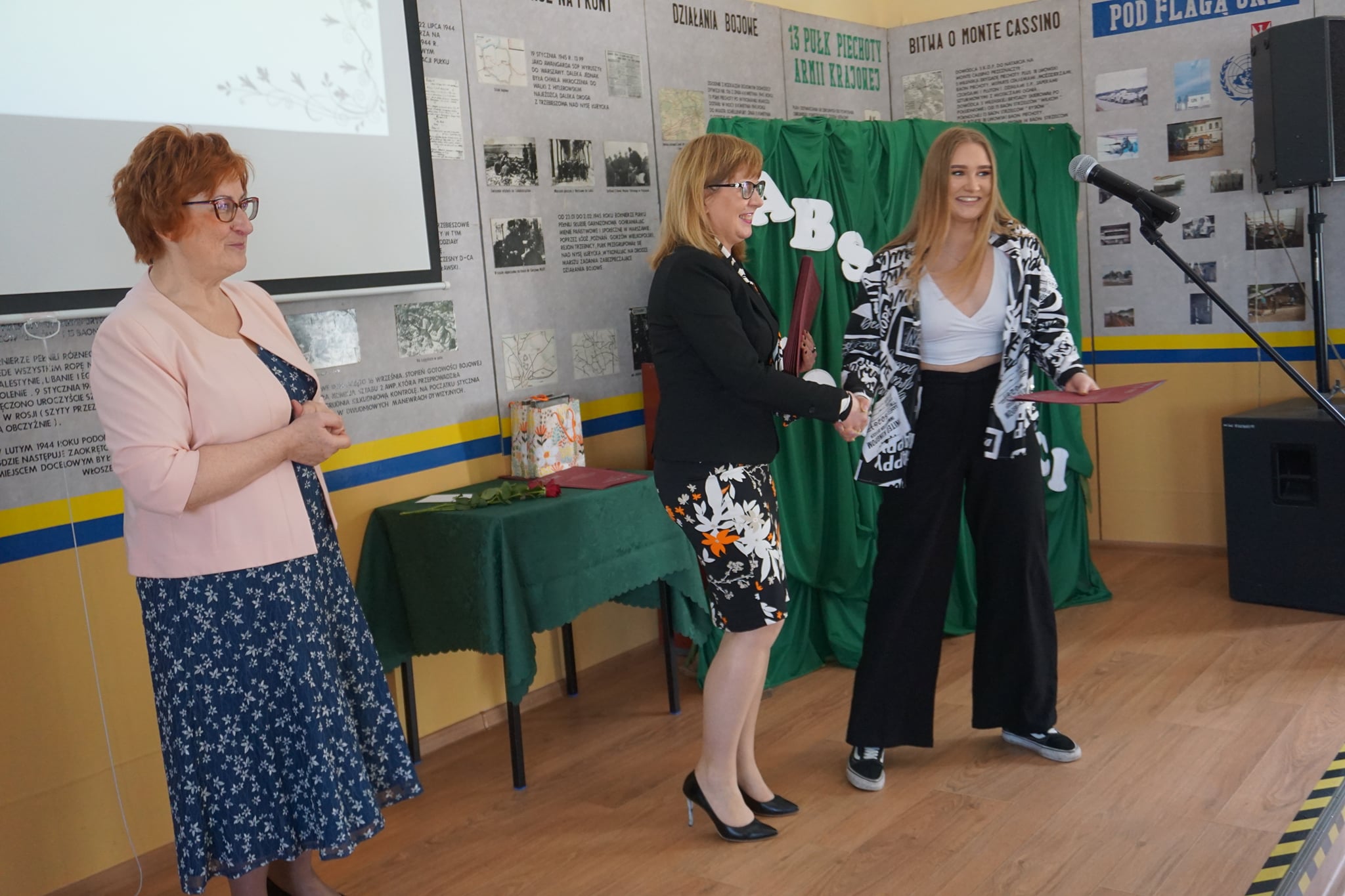 29 kwietnia 2022r. pożegnaliśmy uczniów klasy 4TL. Podczas uroczystości, w której wzięli udział absolwenci nie zabrakło także wspaniałych gości: pani Sylwia Wojtasik-Członek Zarządu Powiatu Nowosolskiego wręczyła Nagrodę Starosty absolwentce roku -Dagmarze Godeckiej za najwyższą średnią uzyskaną w trakcie edukacji , rodzice uczniów odebrali listy gratulacyjne, a przedstawicielka Rady Rodziców przekazała serdeczne gratulacje i życzenia . Młodsi koledzy z klasy 3TLIG we wzruszających słowach podziękowali absolwentom za wspólne chwile i życzyli im wszelkiej pomyślności zarówno na maturze, jak i w życiu zawodowym.