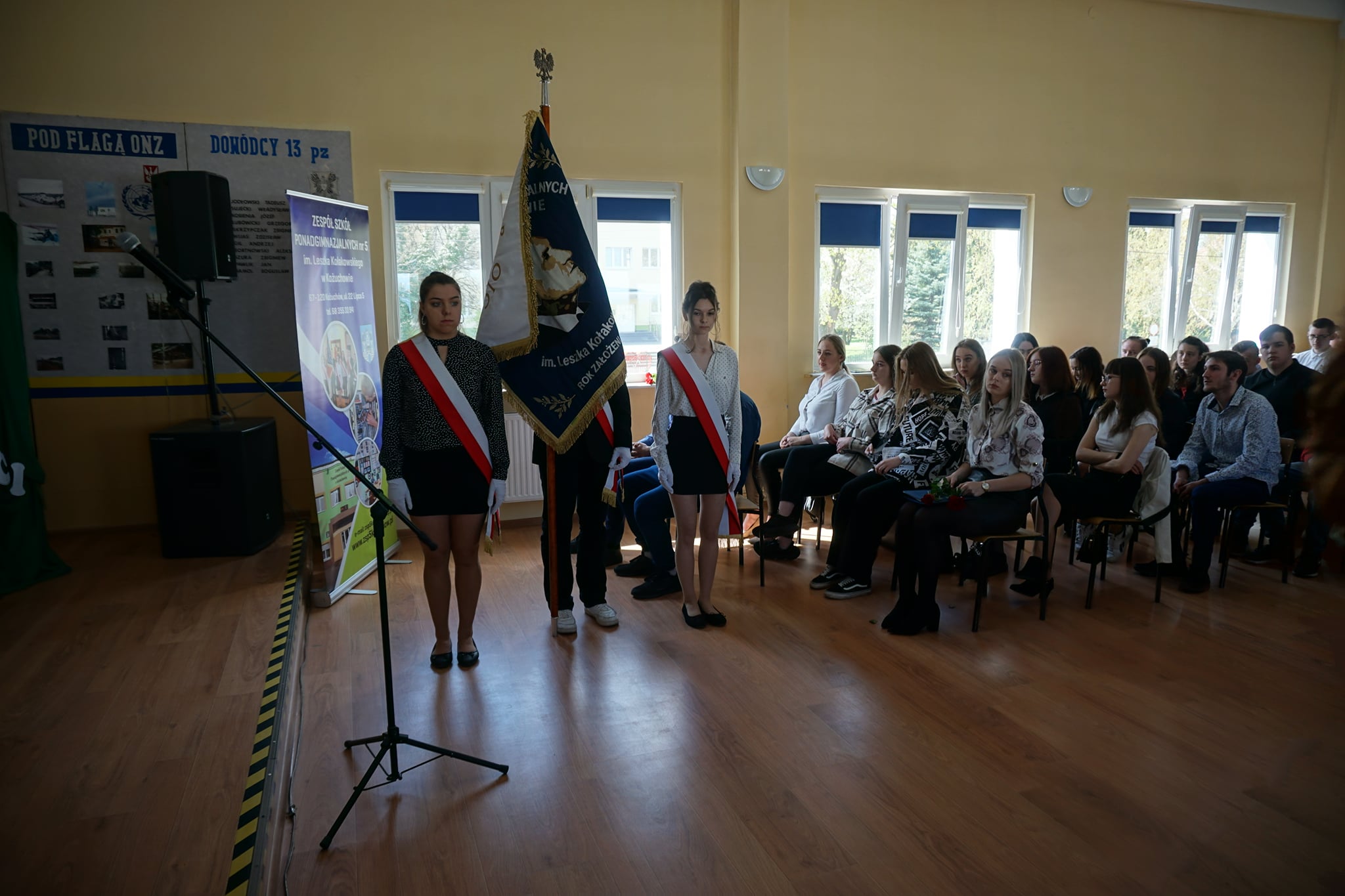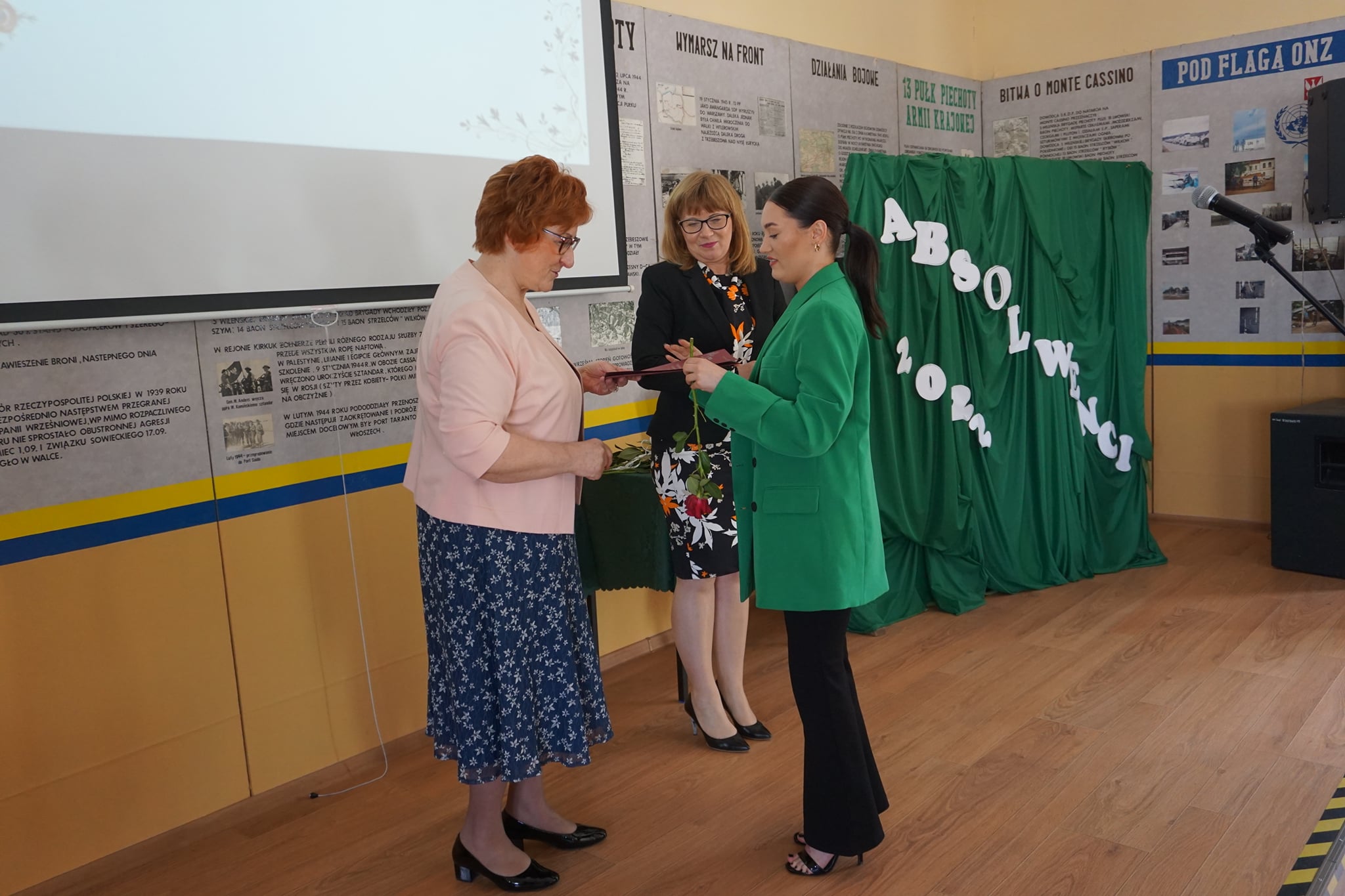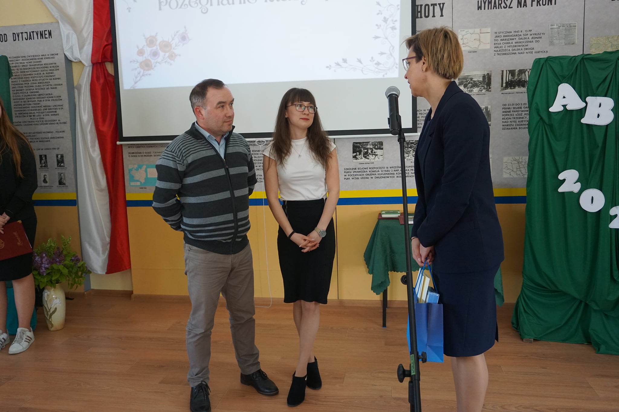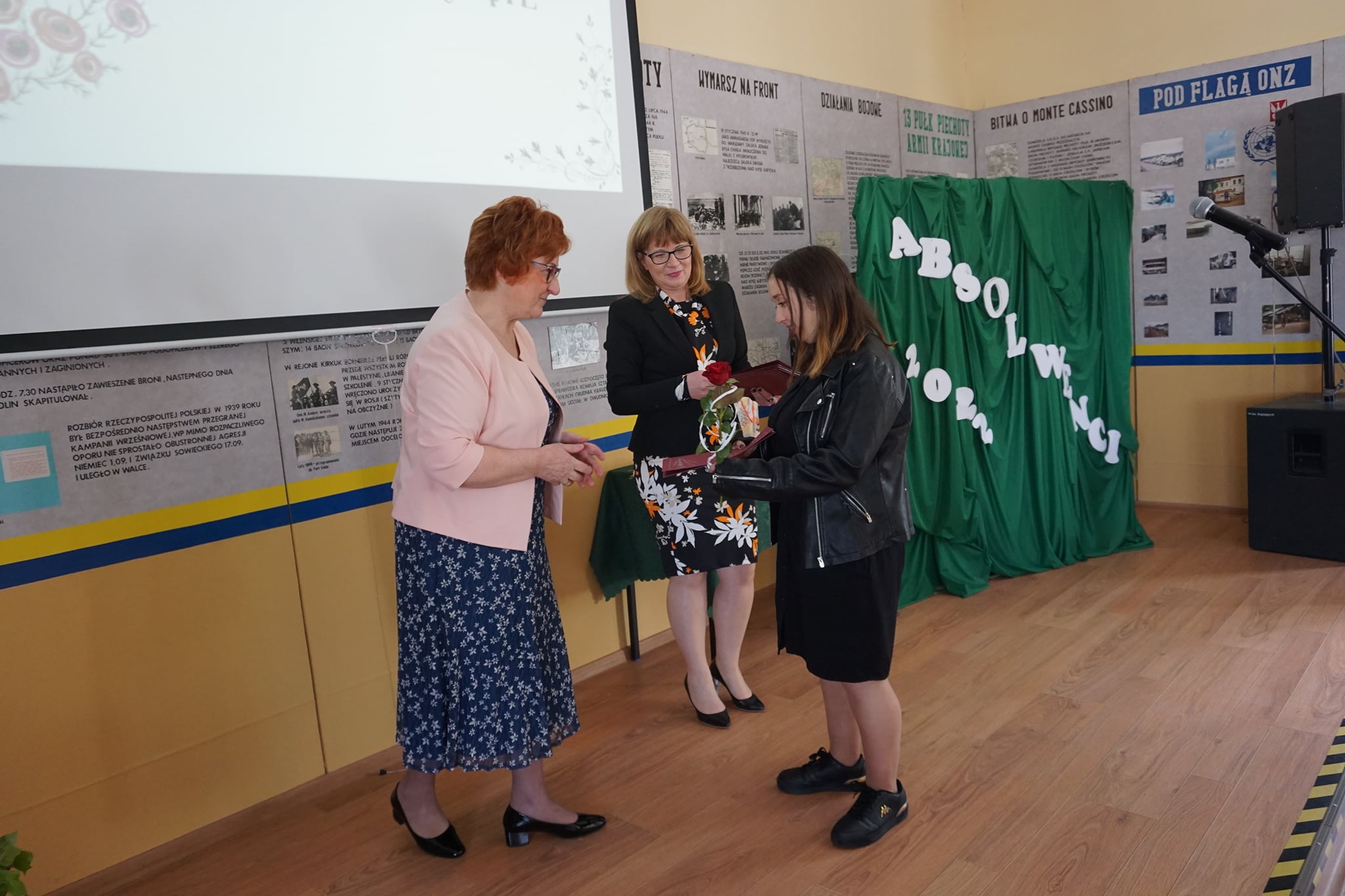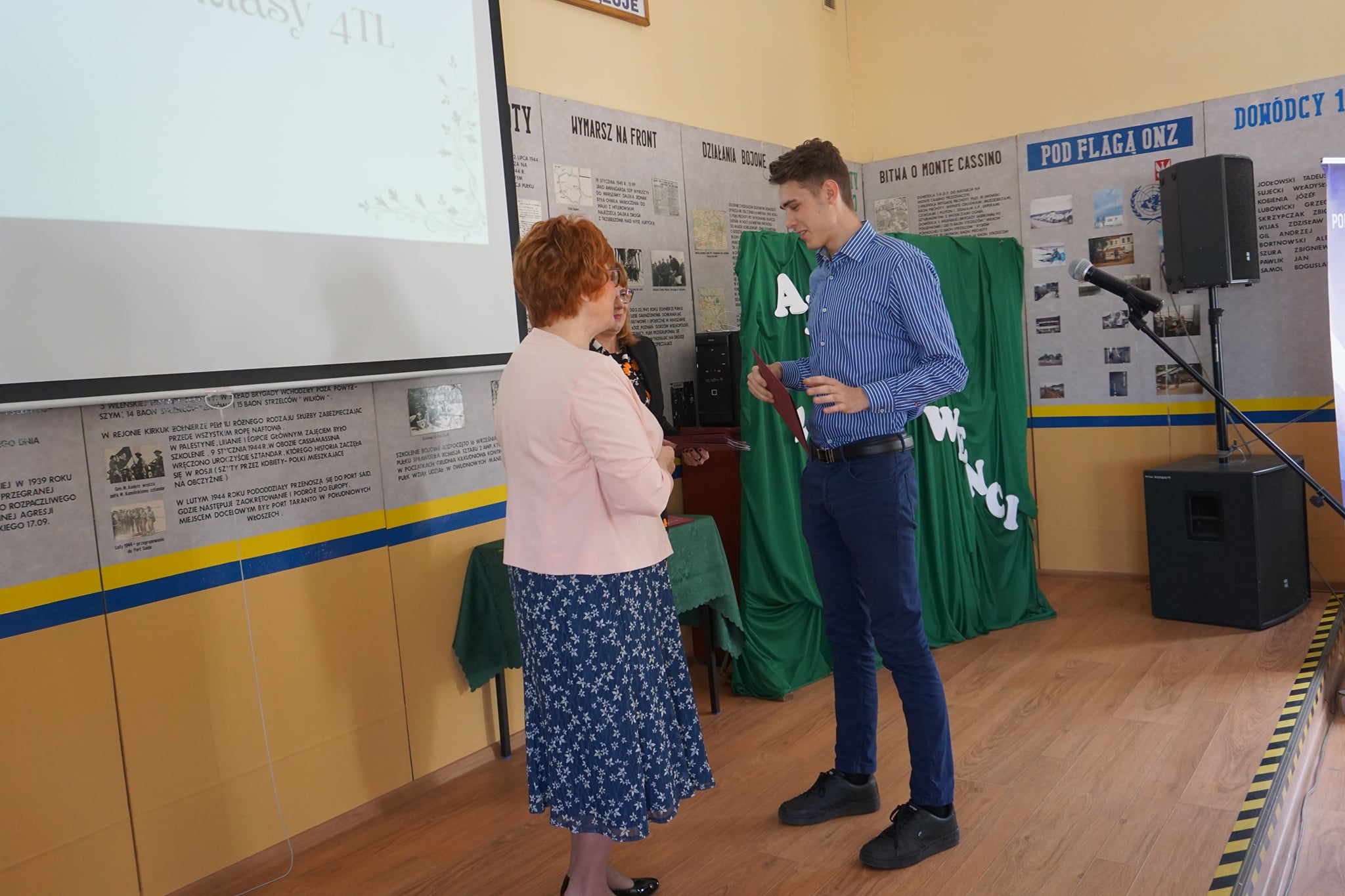 29 kwietnia 2022r. pożegnaliśmy uczniów klasy 4TL. Podczas uroczystości, w której wzięli udział absolwenci nie zabrakło także wspaniałych gości: pani Sylwia Wojtasik-Członek Zarządu Powiatu Nowosolskiego wręczyła Nagrodę Starosty absolwentce roku -Dagmarze Godeckiej za najwyższą średnią uzyskaną w trakcie edukacji , rodzice uczniów odebrali listy gratulacyjne, a przedstawicielka Rady Rodziców przekazała serdeczne gratulacje i życzenia . Młodsi koledzy z klasy 3TLIG we wzruszających słowach podziękowali absolwentom za wspólne chwile i życzyli im wszelkiej pomyślności zarówno na maturze, jak i w życiu zawodowym.