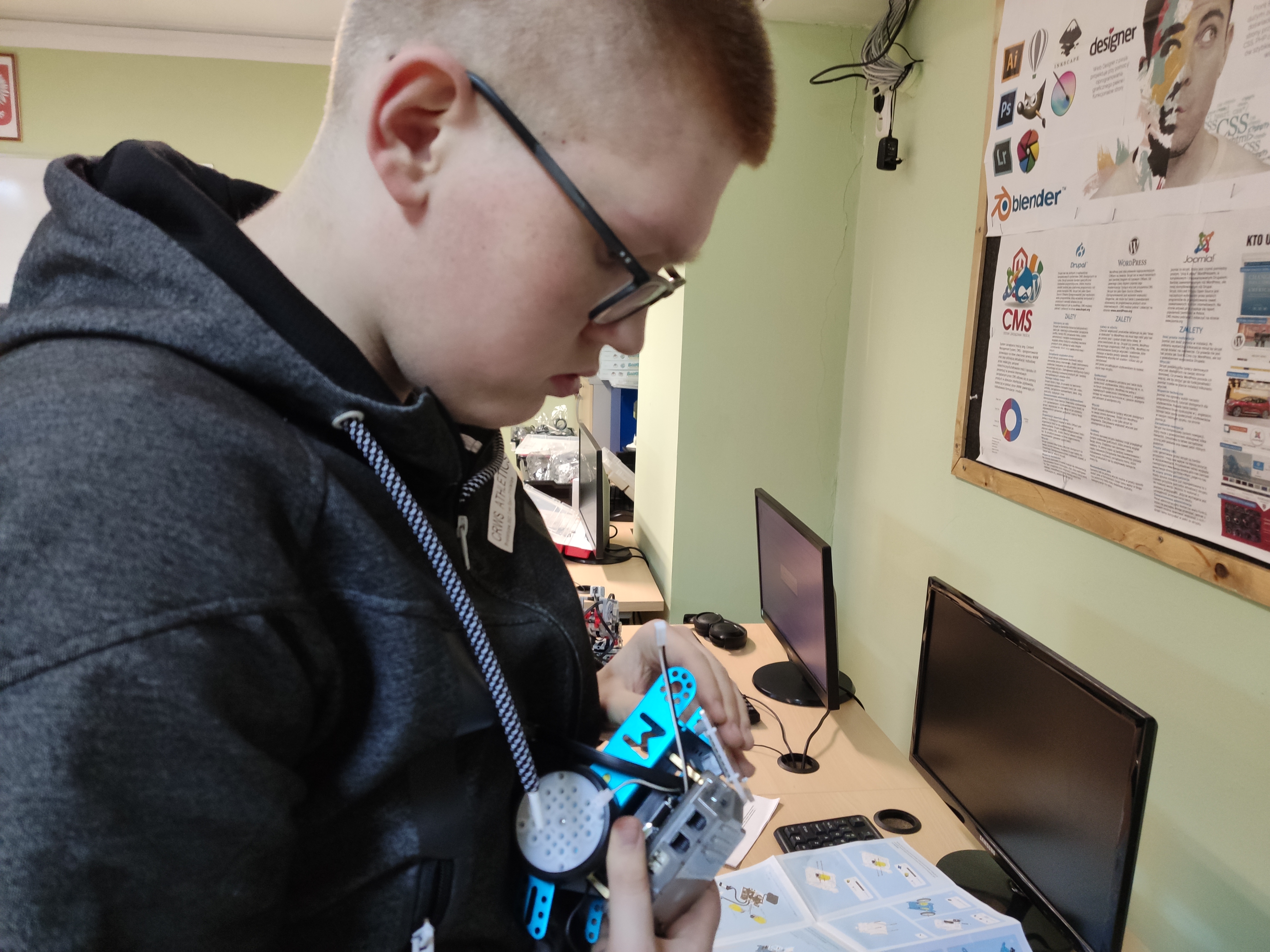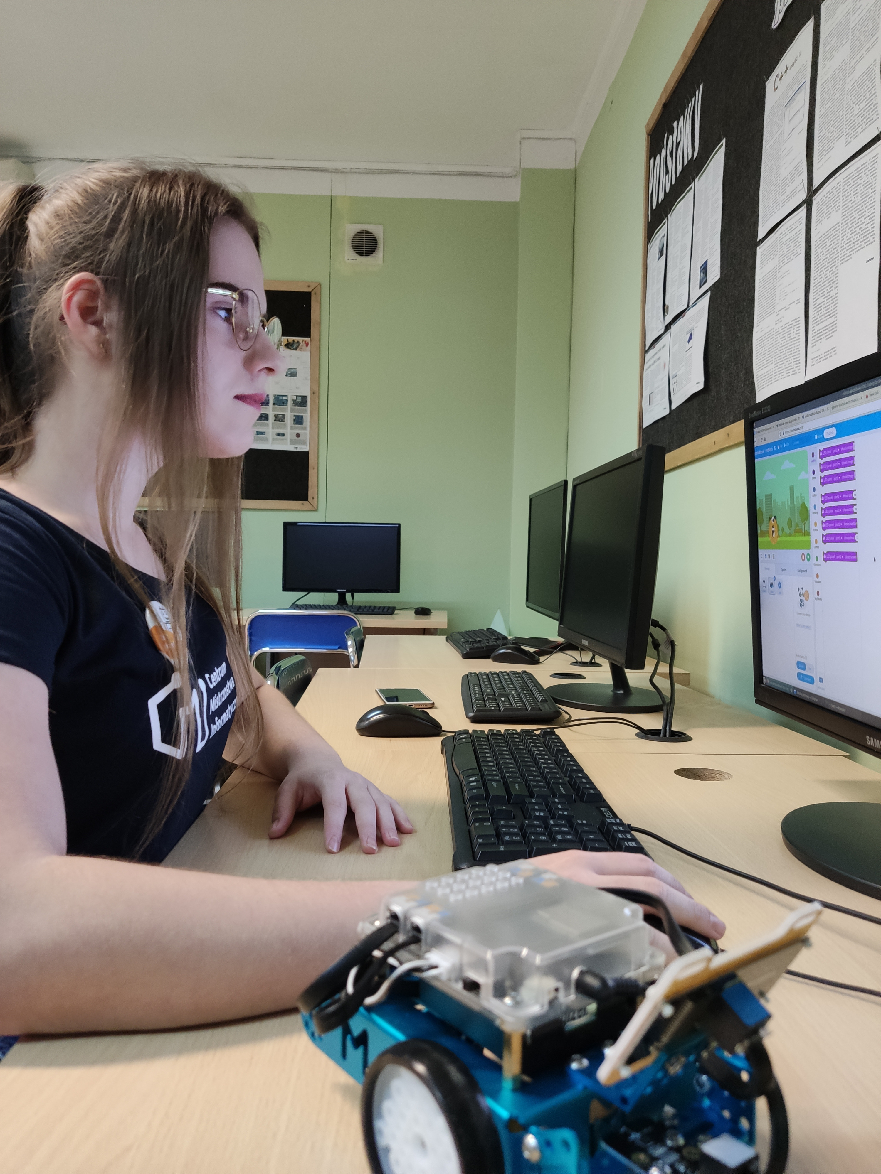 W ramach zajęć uczymy się programować m.in. w języku Python, poznajemy podstawowe algorytmy oraz programujemy roboty mBot i Lego Mindstorms EV3.