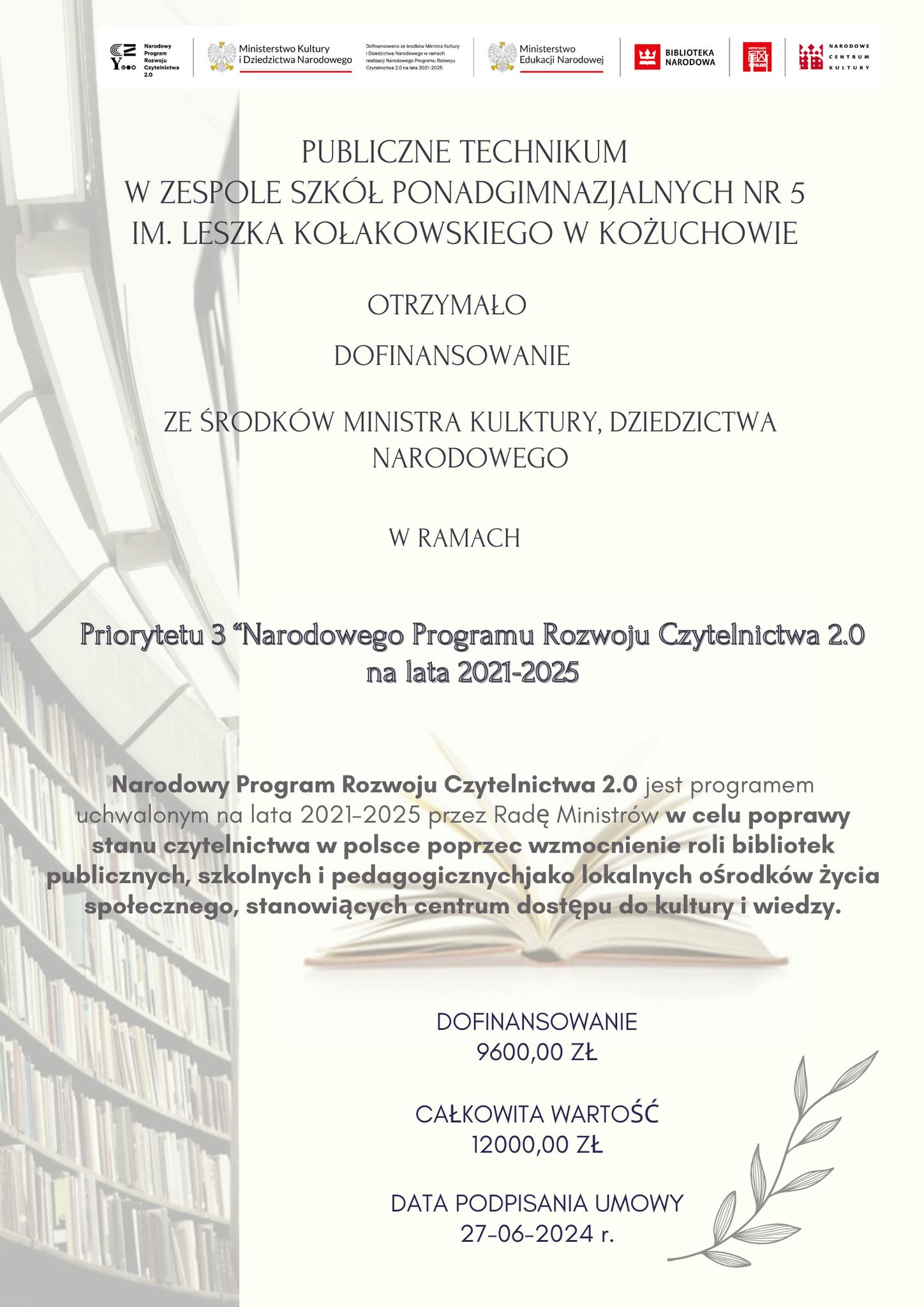 Przedsięwzięcia realizowane były w ramach projektu "Narodowy Program Rozwoju Czytelnictwa 2.0."